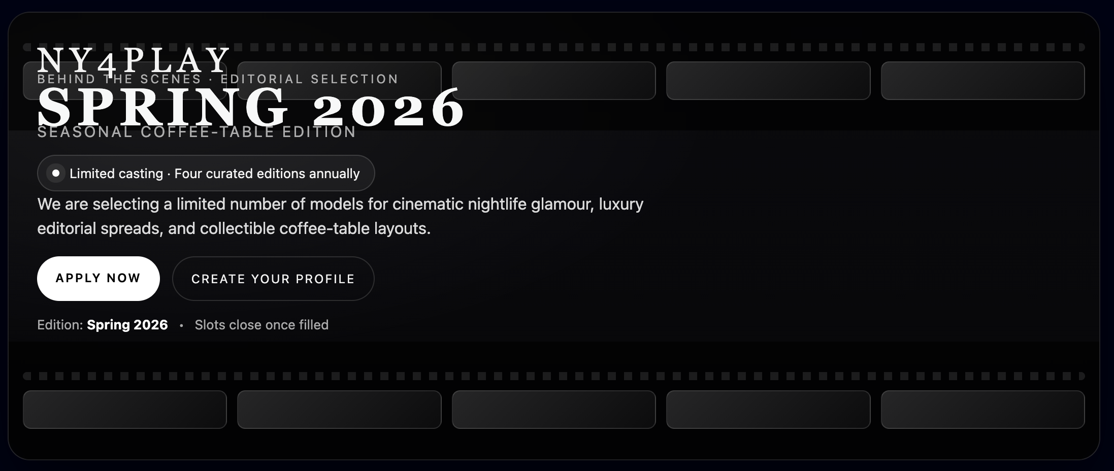 NY4PLAY Behind the Scenes · Editorial Selection SPRING 2026