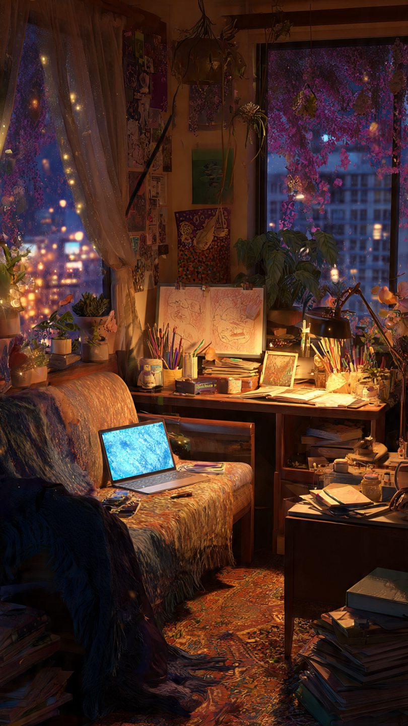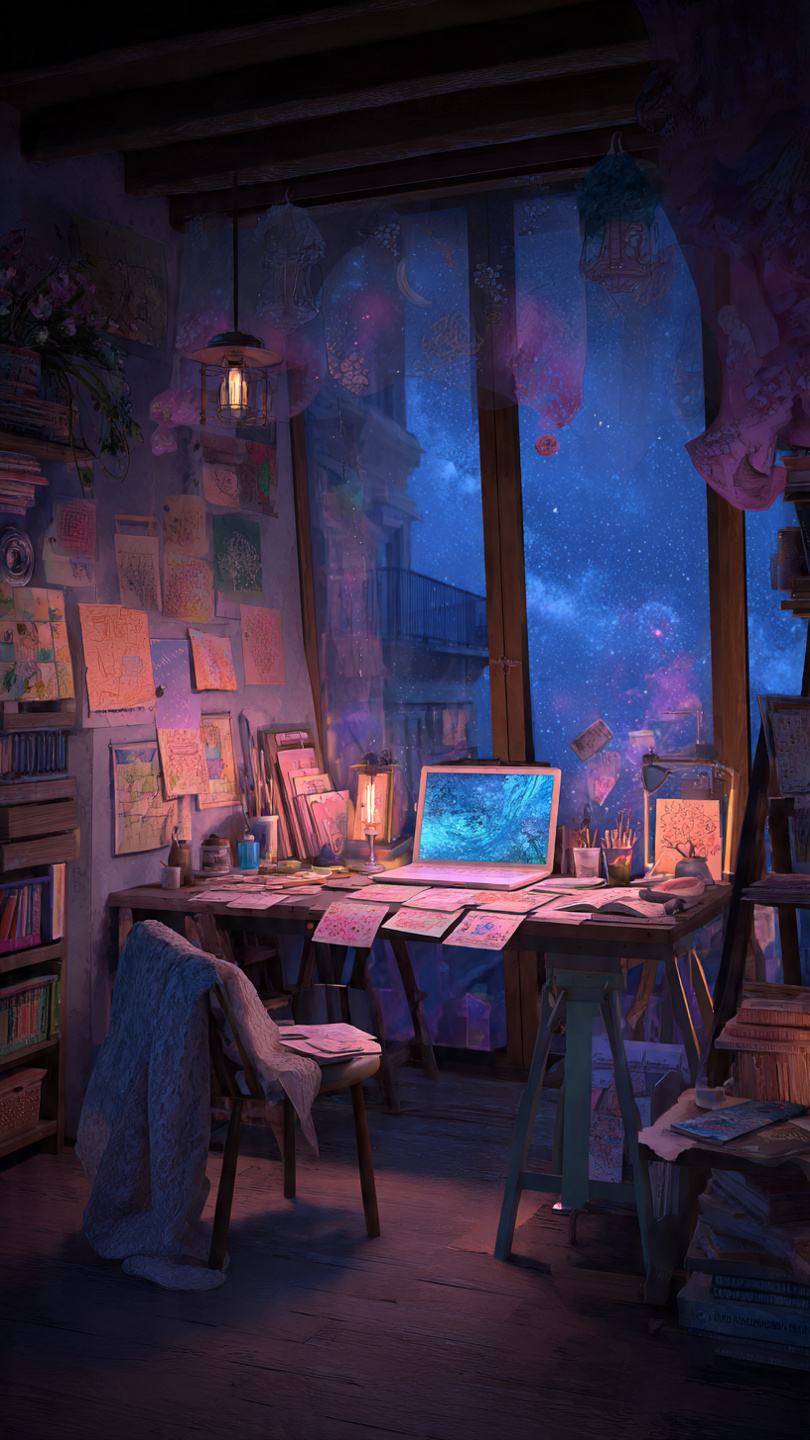 Inside, the world was alive. Paints opened themselves. Fabrics whispered. Notebooks begged for her pen. Ideas fluttered like birds, landing when she reached out.